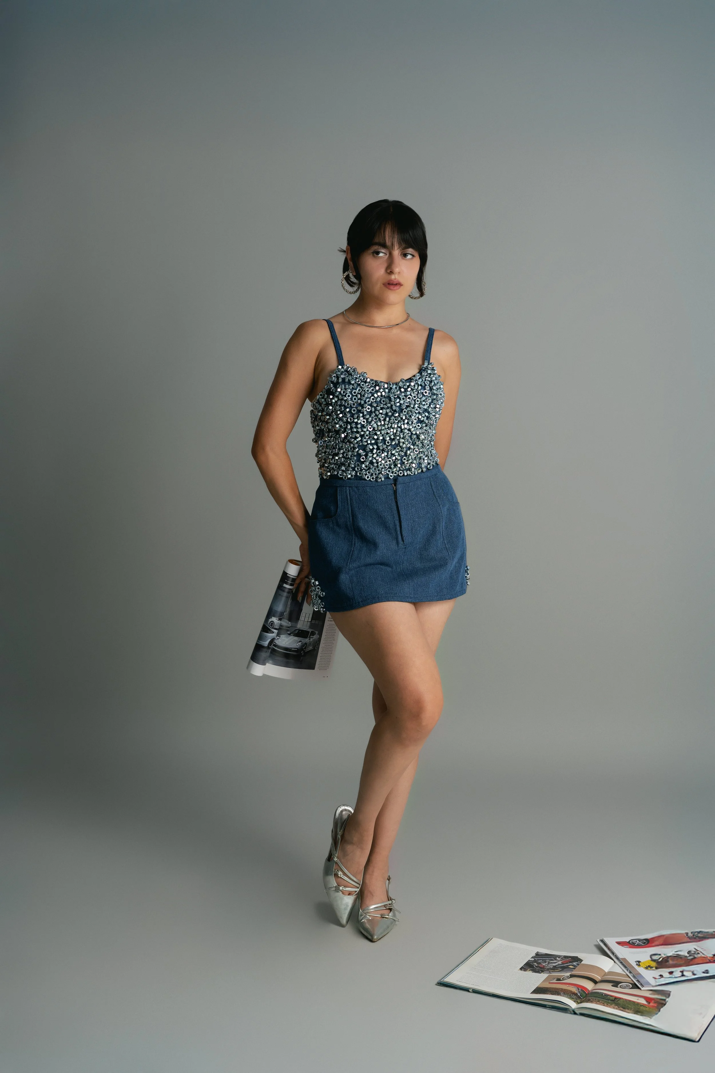 Mechanics of Fashion is a bold and nostalgic collection inspired by Susana Guillen’s childhood memories of watching her uncle repair his iconic blue Volkswagen bug, fused with her like for classic cars. Drawing inspiration from her red Jeep XJ, the color palette reflects, engine blacks, deep reds, metallic silvers, and steel blues.